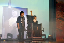 “咳咳,嗆死我了。”后臺工作人員被濃重的舞臺干冰煙霧嗆得直咳嗽。為了達到更好的舞臺效果,在彩排后,主辦方特意加重了舞臺煙霧的濃度,這就使得這些后臺工作人員有幸“大飽口福”。