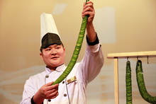 在《勞動者的風(fēng)采》這個節(jié)目中,大廚的刀工給同學(xué)們留下了深刻的印象,幾個癡迷的觀眾竟追著大廚到了后臺,圍著大廚剛切出的“蓑衣黃瓜”不停地拍照,最后“蓑衣黃瓜”難逃被搶吃一空的命運,師傅看著這情景只能哭笑不得。