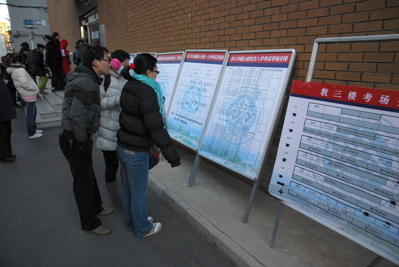 2011年全國碩士研究生統一入學考試于1月15日在我校阜成路校區順利開展,共有一千二百余名考生在北京考點報考并參加了我校的研究生入學考試。與往年研究生考試工作有所不同是,我校今年新增設了11個專業學位碩士點,所有考生自行從網上打印準考證等。