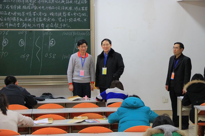 上午十時許,我校黨委副書記張德玉同志來到考場巡察并向我校考務工作人員傳達了“嚴抓考風考紀,真心服務考生”的工作精神。下午兩點半,校長譚向勇來到考場巡視與指導考務工作。在詢問及聽取了考務工作人員的匯報后,我校領導積極肯定了各位監考老師和考務工作人員嚴謹負責的工作態度,要求全體考務工作人員再接再厲,切實抓好考風考紀工作,并努力為廣大考生服務。考務工作總負責人謝志華副校長一直輾轉在各個考場,不辭辛苦地負責此次研究生入學考試工作。我校領導的密切關注,表達了我校對研究生入學考試工作的高度重視,同時,學校研究生部、學校辦公室、紀檢審、保衛處、后勤處、網絡中心、校醫院、學校物業等部門的老師攜程合作、堅守在考試工作第一線,為2011年研究生入學考試工作打下了堅實基礎。與此同時,我校研究生同學也充斥著飽滿的熱情,積極參加到考試工作的志愿者隊伍中,為考生答疑指引,傳遞溫暖。