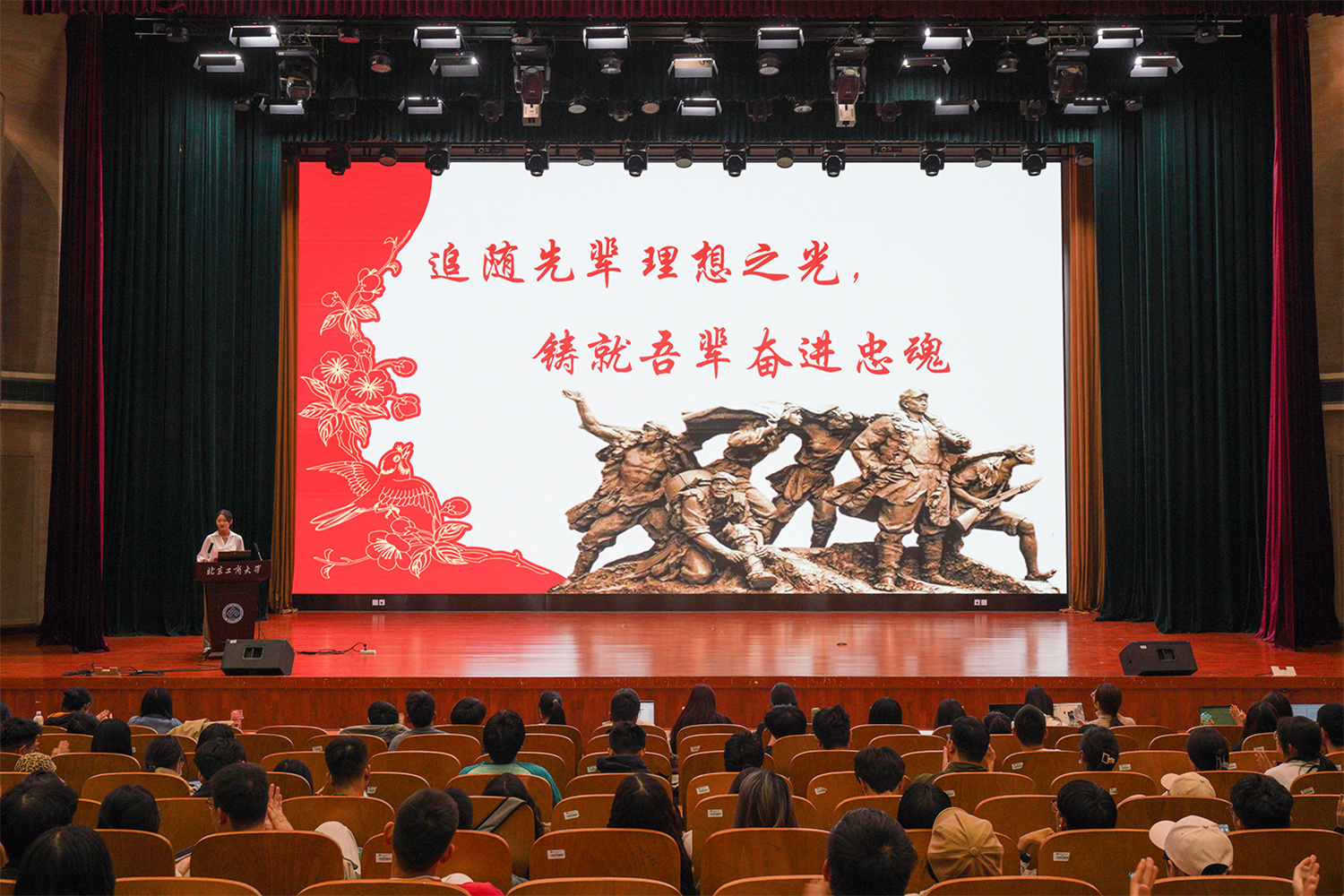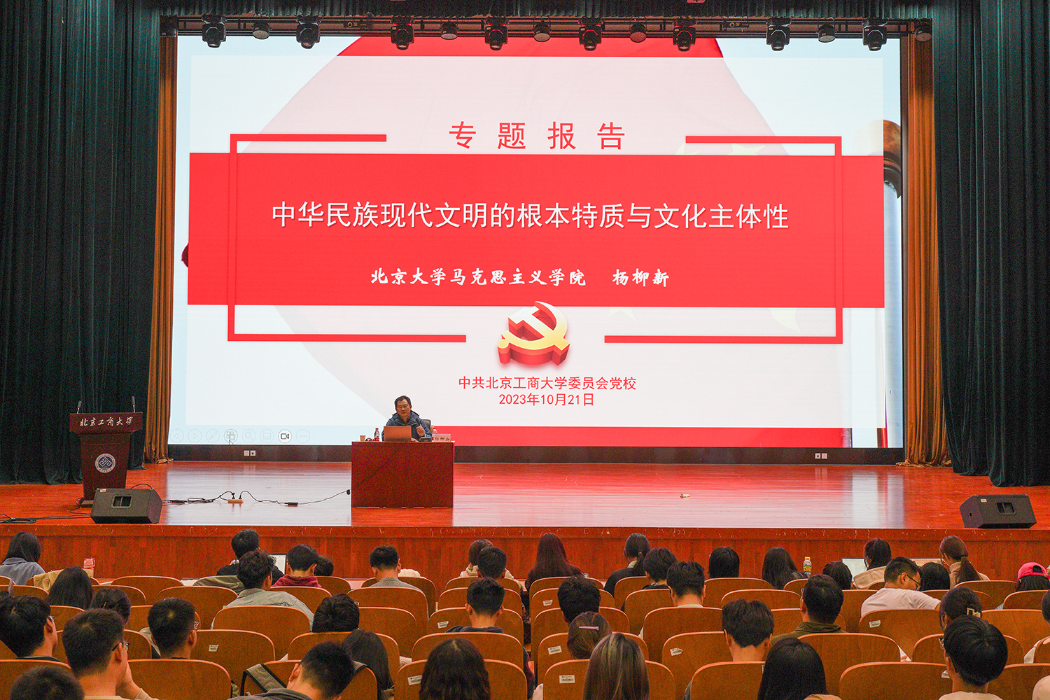何猛作題為《學習貫徹習近平新時代中國特色社會主義思想,筑牢信仰之基》的報告。她結合不同歷史時期的感人案例,闡釋了共產黨人堅如磐石的共產主義信仰,強調了把牢理想信念“方向盤”的重要意義。北京大學德育研究所所長、馬克思主義學院副教授楊柳新帶來講座《中華民族現代文明的根本特質與文化主體性》,他從中華文明的“五個特質”出發,分德、理兩方面闡釋了文化的主體性與獨立性,希望同學們能堅持文化自信,主動弘揚中華優秀傳統文化、革命文化、社會主義先進文化,為增強國家文化軟實力貢獻青春力量。