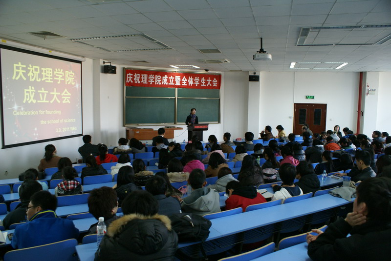 3月9日下午良鄉校區理學院召開成立后首次全體學生大會。副校長李朝鮮、學生處處長呂素香、理學院院長、黨總支書記曹顯兵、副院長何聰芬、李寶河、計信學院黨總支副書記鄭喜姣及原輔導員、理學院數學系主任李晉明及學院辦公室、教務、學生管理的全體老師及良鄉校區全體學生和畢業班學生代表參加大會。理學院黨總支副書記田宏主持。