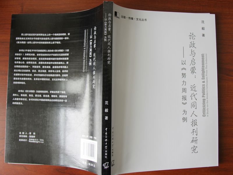 藝術與傳媒學院沈毅教授的專著《論政與啟蒙:近代同人報刊研究——以<努力周報>為例》已于日前由中國傳媒大學出版社出版。