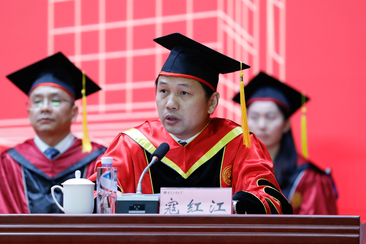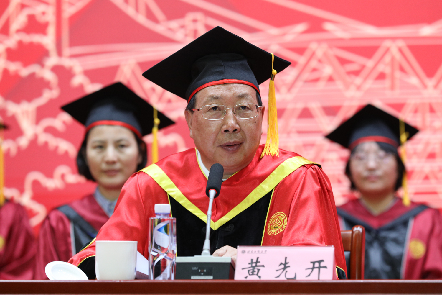 校領導黃先開、郭建華、宋曉欣、鄭文紅、楊紅、徐丹丹、毛新述、寇紅江出席畢業典禮。學校86級校友——居然之家創始人、董事長汪林朋,校學位委員會成員、各學院領導、教師代表、相關職能部門負責人參加典禮。典禮由黨委書記黃先開主持。
