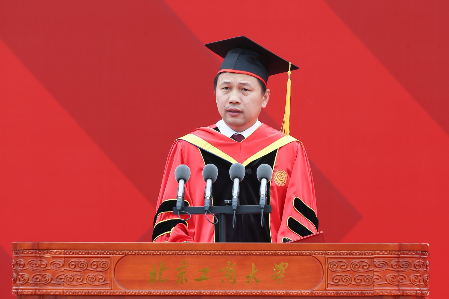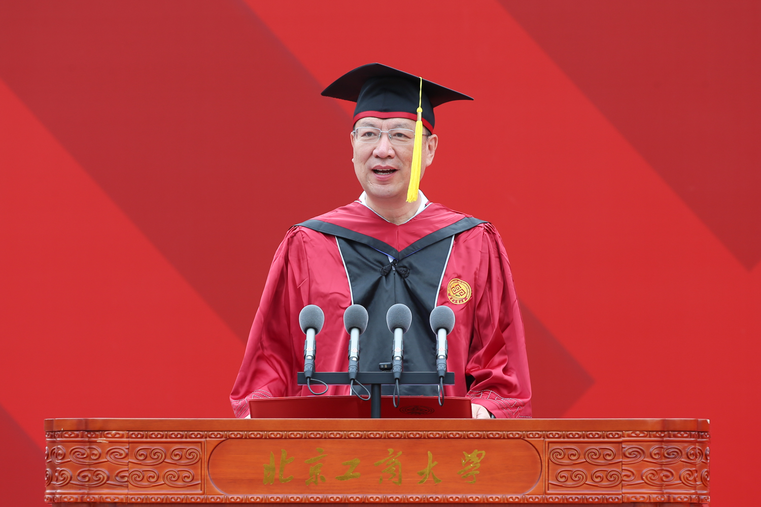 黃先開分享了自己的三點感悟:一是砥礪前行,有大志向。學子們要始終牢記今天的中國在世界大格局中的地位,不畏艱難,不懼挑戰,勇敢地去追尋屬于大家的星辰大海;二是縱橫天下,有大格局。要自覺擔當重任,讓青春在實現中華民族偉大復興的中國夢中綻放異彩,在祖國最需要的地方發光發熱,貢獻青春力量;三是要海納百川,有大胸懷。要以開放的心態和包容的精神,擁抱多元而美好的世界,創造人類文明的輝煌未來。他寄語全體畢業生要懷揣北工商人的責任擔當,在推進強國建設、民族復興偉業中展現青春作為、彰顯青春風采、貢獻青春力量,奮力書寫為中國式現代化挺膺擔當的青春篇章。
