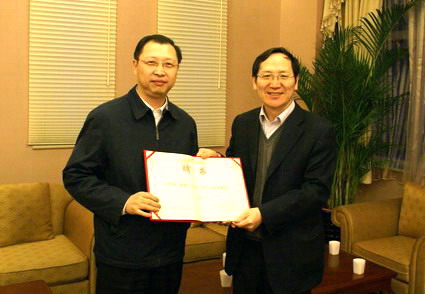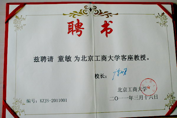 譚向勇校長為客座教授童敏司長頒發了聘任證書。