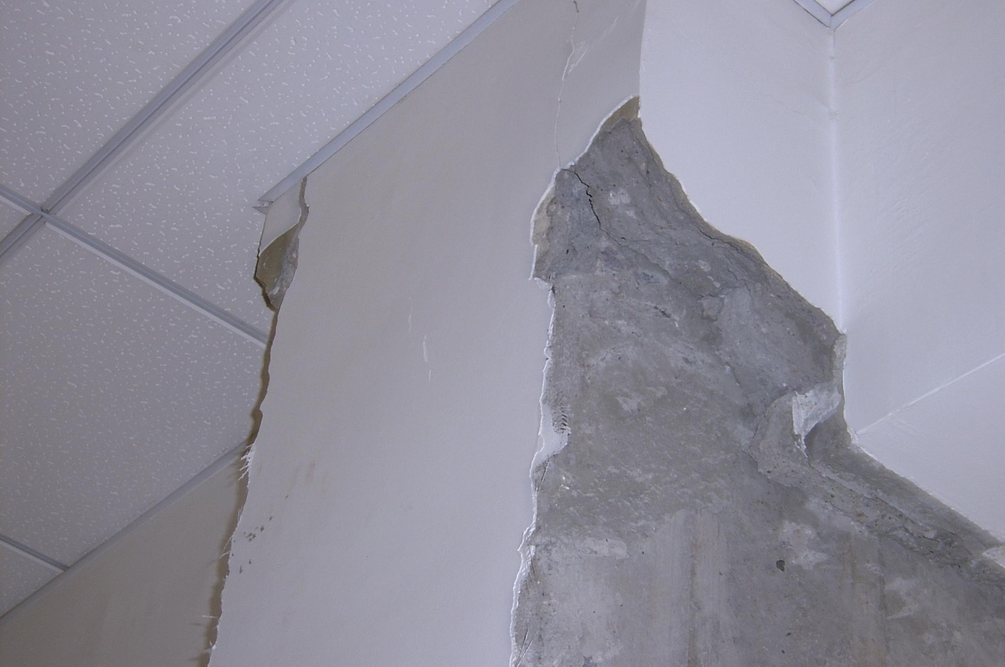 大家重點查看了圖書館建筑表面剔鑿后的建筑結構,尤其是梁、柱、墻等關鍵部位。通過考察發現,圖書館基礎建筑結構的部分關鍵部位存在重大隱患,總體情況比較嚴重,加固方案還需要進行相應調整。