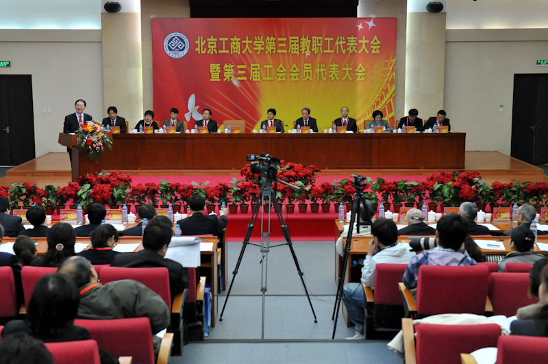 4月9日上午,北京工商大學(xué)第三屆教職工代表大會暨第三屆工會會員代表大會在良鄉(xiāng)校區(qū)隆重召開。大會以“凝心聚力十二五、科學(xué)發(fā)展促轉(zhuǎn)型”為主題,總結(jié)第二屆“雙代會”工作,討論學(xué)校“十二五”時期事業(yè)發(fā)展規(guī)劃,選舉產(chǎn)生第三屆教代會執(zhí)委會、工會委員會、經(jīng)審委員會、新一屆教代會、工會下設(shè)機構(gòu)及其成員,團結(jié)動員教職員工為全面貫徹落實“十二五”發(fā)展規(guī)劃,建設(shè)特色鮮明的教學(xué)研究型大學(xué)做出新的貢獻。