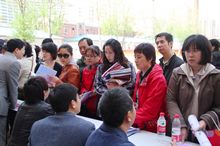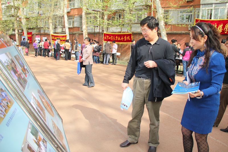 操場上,一派熱火朝天的景象。我校10大學院及相關職能部門、26所兄弟院校和2個咨詢單位,紛紛大顯身手,為前來咨詢的家長和考生答疑解惑。