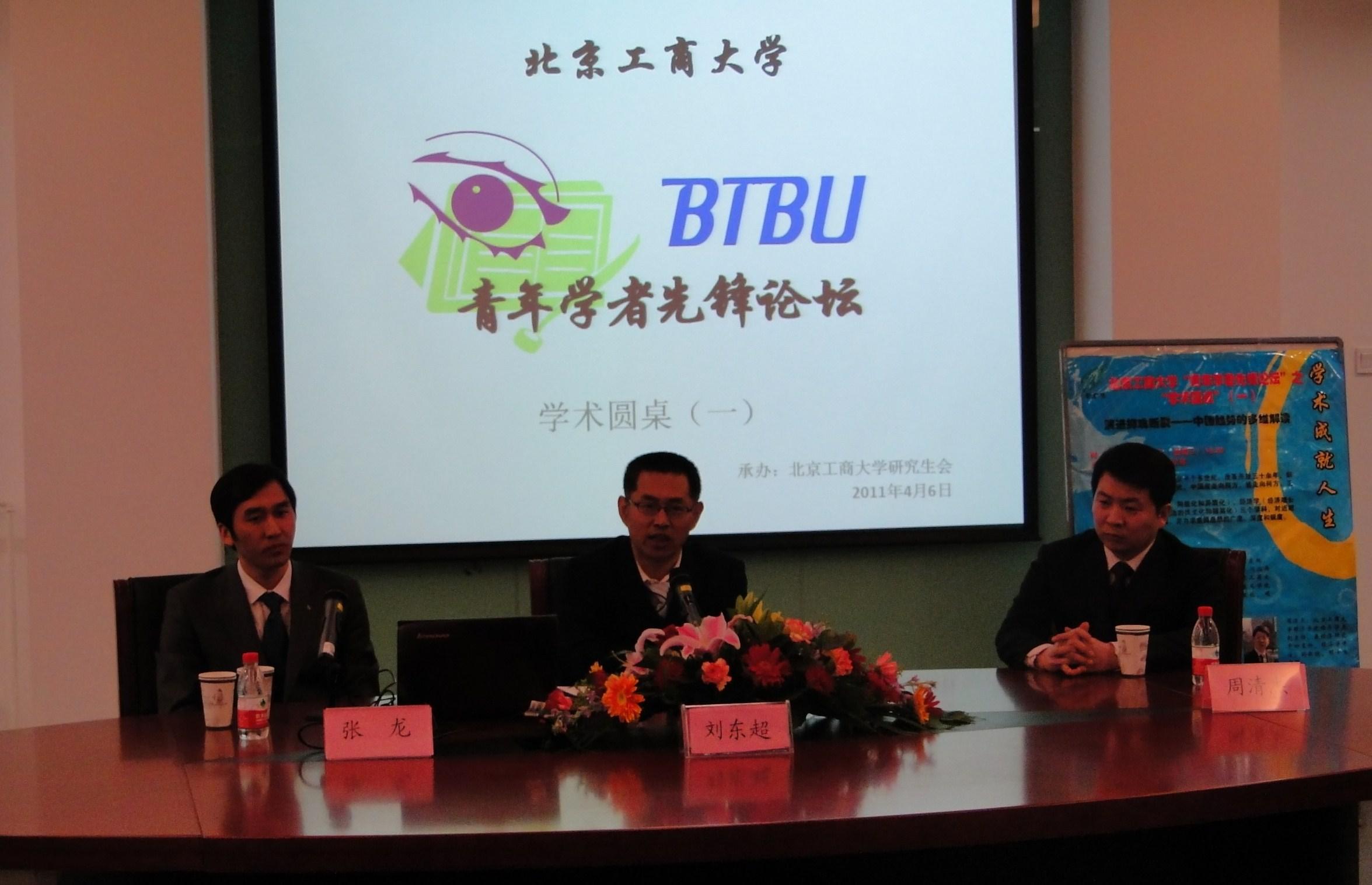 4月6日,青年學者先鋒論壇之學術圓桌在阜成路校區舉辦。校黨委副書記、紀委書記兼工會主席張德玉、校工會常務副主席韓寶龍、校團委副書記郭新愿親臨活動現場。法(馬克思主義)學院劉東超教授、張龍副教授以及經濟學院周清杰副教授受邀出席,分別作主題發言并與在座的研究生同學交流、互動。
