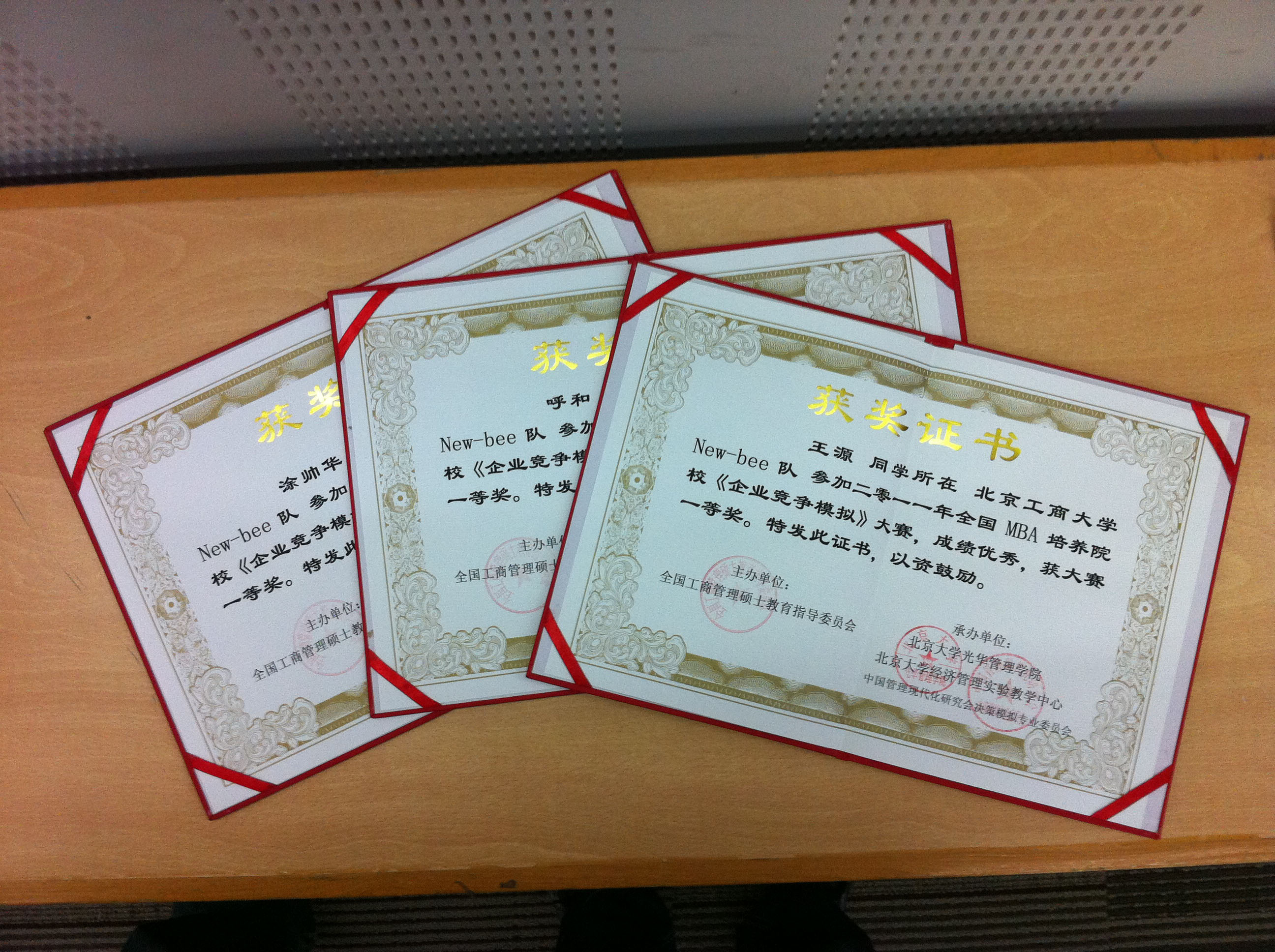 在5月1日結束的“全國MBA培養院校企業競爭模擬大賽”全國總決賽中,我校商學院學生涂帥華等組成的“新蜜蜂”代表隊,在文科實踐中心陳冰、王瀅、徐鳳老師的指導和組織下獲得了一等獎。參加此次總決賽的有來自全國23個省(市、自治區)的73所高校的570支代表隊。參賽學校的踴躍程度超過歷史上任何一屆,同濟大學、吉林大學、上海海事大學、安徽大學等高校均參加了比賽。我校代表隊在比賽中成績突出,奪得了總決賽的一等獎。