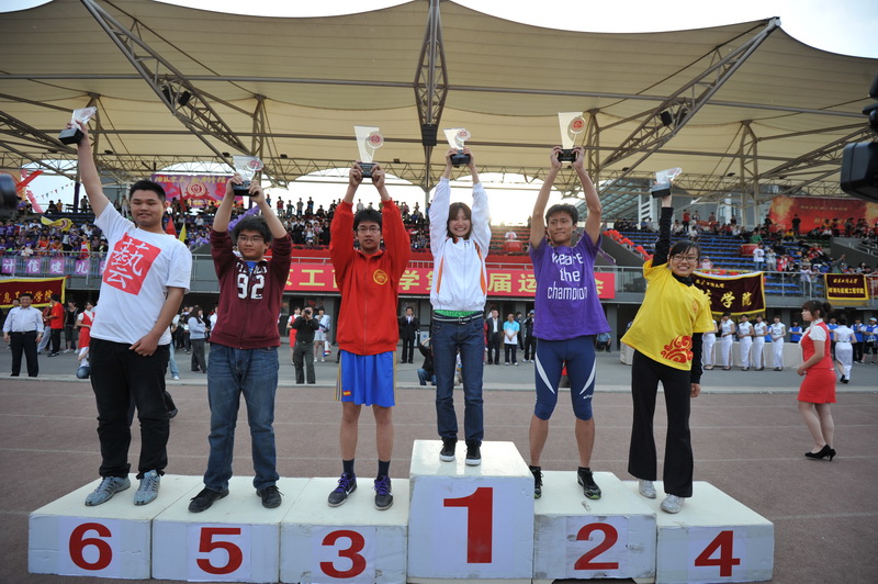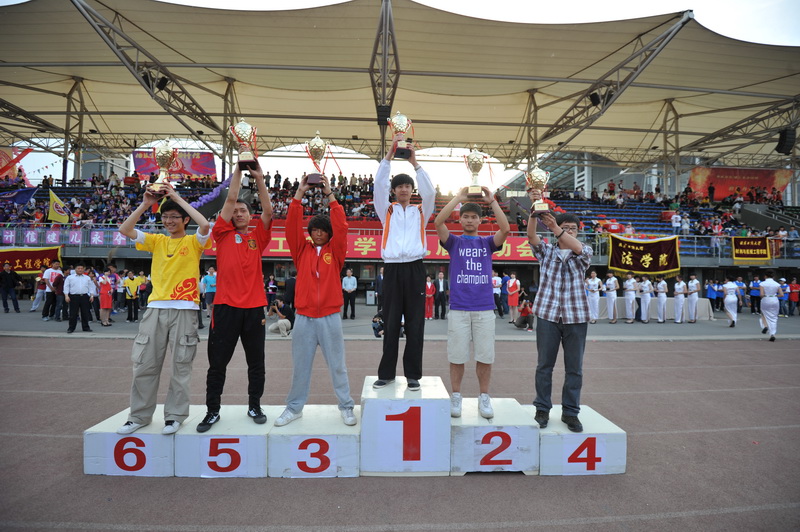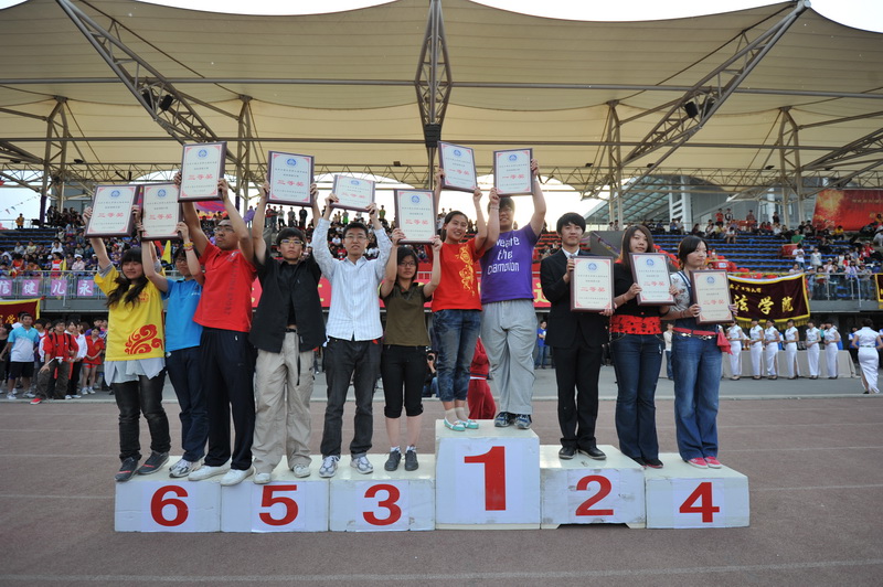 運動員代表再次入場,頑強的拼搏已變成了滿意的收獲。團委書記呂良宣布了北京工商大學第十屆體育文化節成績,包括網球賽、乒乓球班級團體賽、排球聯賽、羽毛球班級團體賽、男子足球聯賽、單腳踢毽團體賽和定向越野賽在內的7項比賽結果依次揭曉;體育與藝術教學部副主任陳新宣布了本屆運動會學生團體總分比賽成績;校工會文體部部長徐紅京宣布了教工比賽成績;黨委宣傳部部長張春萍宣布了獲得“精神文明獎”和“啦啦操展示獎”的單位。(名單見附件)