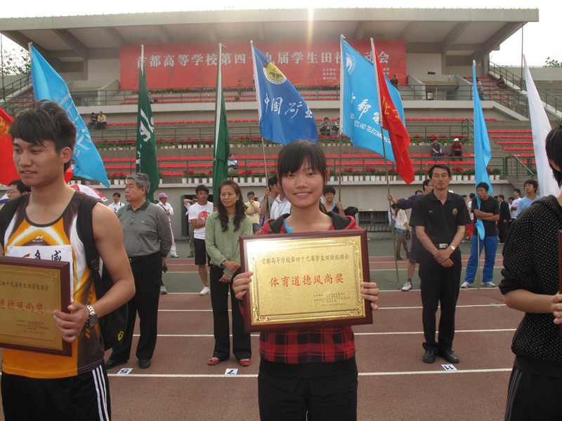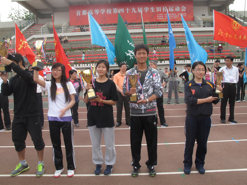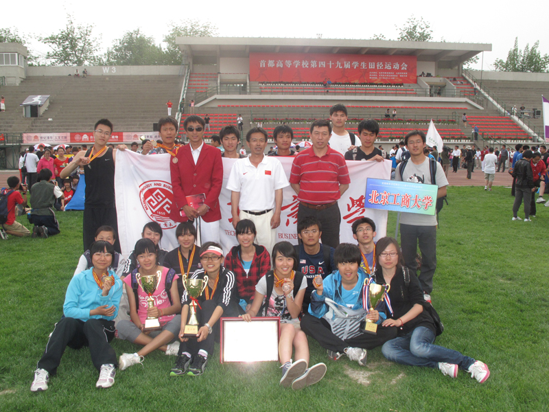 在本屆田徑運動會上,我校20名田徑健兒與來自首都61所高校的1207名大學(xué)生運動員同場競技,他們不畏強手,奮力拼搏,共取得2金、5銀、7銅和女子團體總分第六名、男子團體總分第六名、男女團體總分第七名的優(yōu)異成績,這是我校歷史上取得的最好成績。同時我校被大會組委會評為“體育道德風(fēng)尚獎”優(yōu)秀學(xué)校,這也是北京工商大學(xué)成立以來首次在競賽成績和精神文明方面同時獲得了所有的獎項。