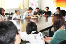 外國語學院領導和研究生部負責同志聽取了學生們對英語課程提出的具體意見,與學生進行了親切的交談、探討,解答了同學們在英語學習過程中遇到的困惑并對學習方法加以指導。張院長在與學生交流時指出,通過此次座談會了解學生們對英語教學的反饋,不僅有助于提高和改進我校研究生英語教學水平,提高學生的語用能力,也為今后研究生英語教學的改革提供了新點子、新思路和新辦法,使我校研究生英語教學再上一個新臺階。