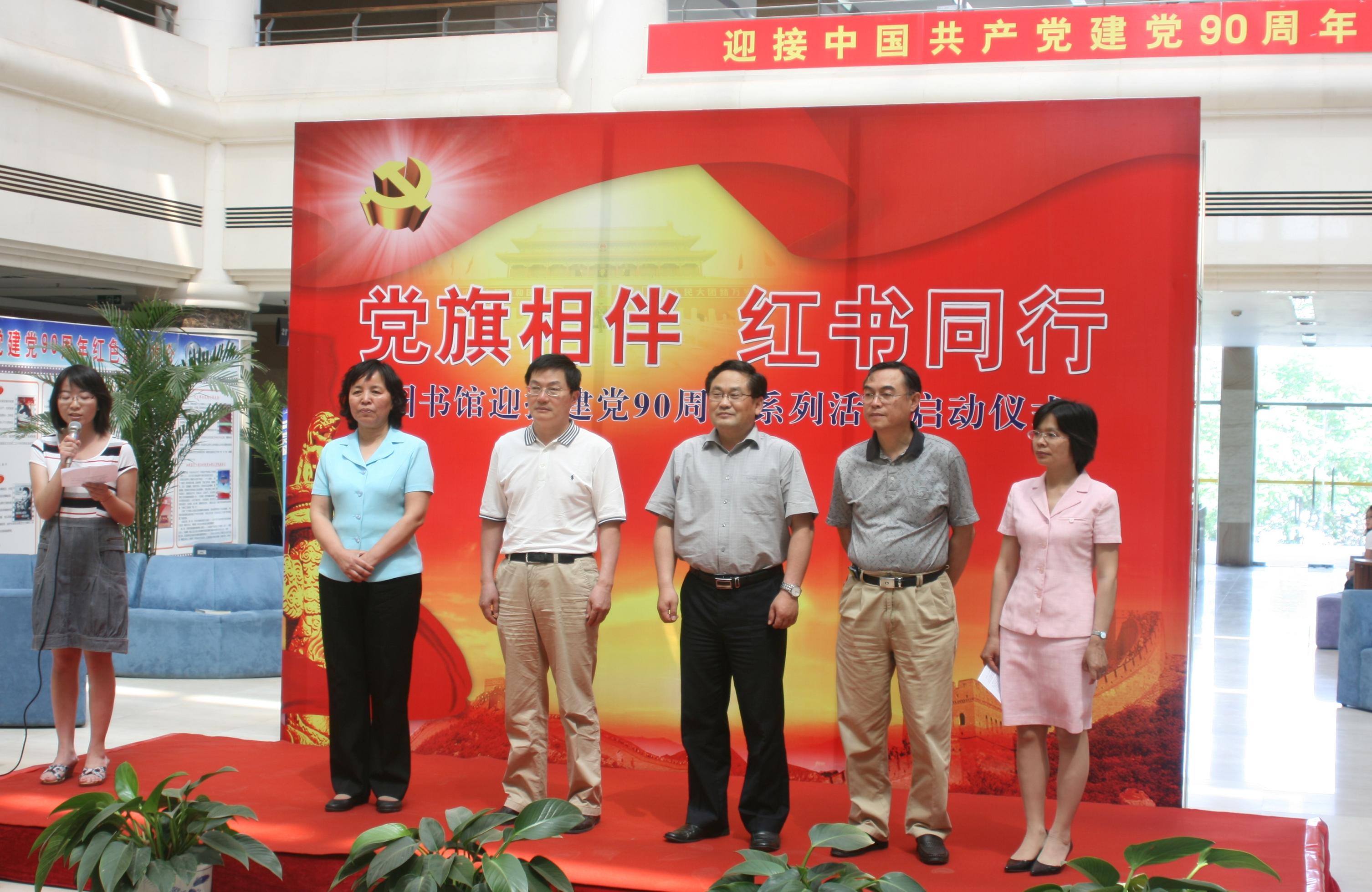 5月25日,圖書館在良鄉(xiāng)校區(qū)舉行了以“黨旗相伴,紅書同行”為主題的迎接中國共產(chǎn)黨建黨90周年系列活動啟動儀式。學(xué)校黨委副書記、紀(jì)委書記張德玉、副校長李朝鮮出席了啟動儀式。
