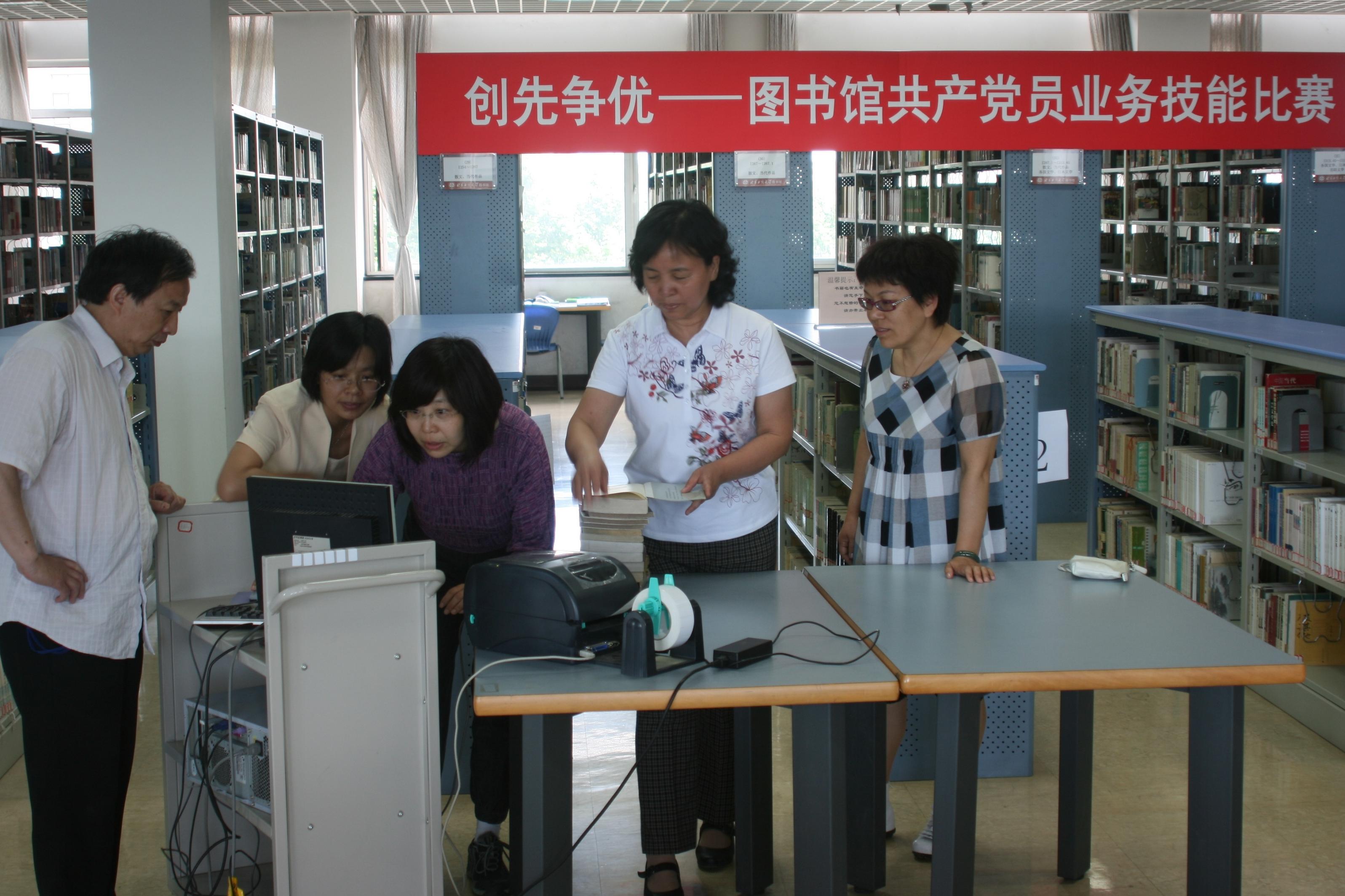 5月31日,圖書館20余名共產黨員和入黨積極分子在良鄉校區文學閱覽室舉辦了一場“創先爭優——圖書館共產黨員業務技能比賽”。館長高潤芝、副館長李艷芬作為參賽隊員參加了本次活動。