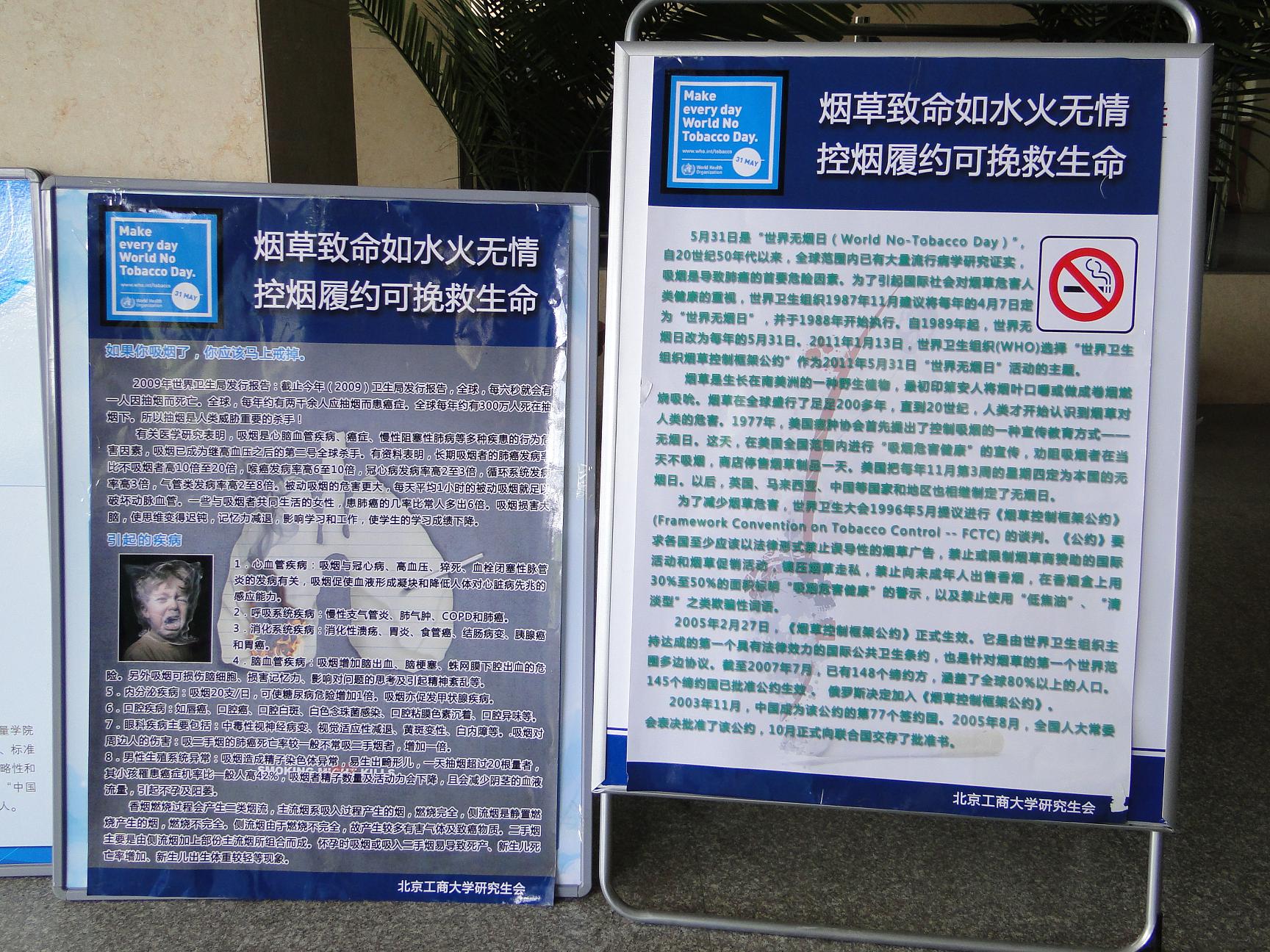 圍繞“世界無煙日”的主題,研究生會還組織開展了“煙草致命如水火無情,控煙履約可挽救生命”的主題宣傳和問卷調查活動。同學們紛紛積極響應并表達了控煙的意愿和決心。