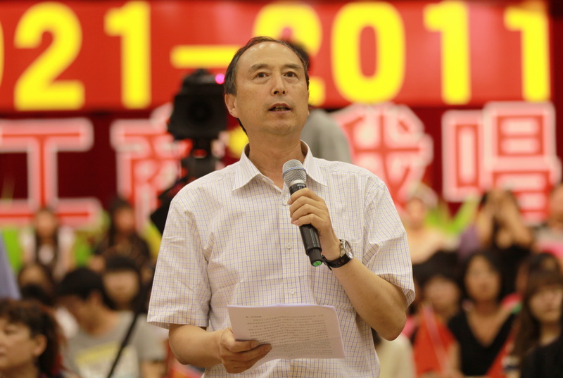 黨委副書記盧思鋒致開幕詞。他首先肯定了本次比賽的重要意義,“這是北京工商大學(xué)歷史上第一次特殊黨日千人大合唱。在這特殊的黨日,兩千師生歡聚一堂,用歌聲共同回顧黨在不同歷史時(shí)期的風(fēng)雨歷程,重溫指導(dǎo)中國(guó)前進(jìn)的普遍真理,歌頌黨帶領(lǐng)人民取得的輝煌成就,表達(dá)高舉黨的偉大旗幟繼續(xù)前進(jìn)的決心。”盧書記總結(jié)了我校本屆藝術(shù)節(jié)取得的良好效果,“各學(xué)院都以‘五月鮮花映工商,我唱頌歌獻(xiàn)給黨’為主題舉辦了多種歌詠活動(dòng),促進(jìn)了我校藝術(shù)水平的提升,也豐富了我校師生的業(yè)余生活。希望這股藝術(shù)之風(fēng)繼續(xù)吹動(dòng)在北工商的校園。”