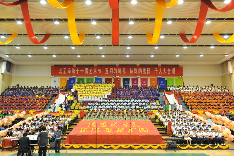 5月31日,主題為“五月的鮮花、特殊的黨日”千人大合唱歌詠比賽暨北京工商大學(xué)第十一屆藝術(shù)節(jié)閉幕式在良鄉(xiāng)校區(qū)文體館隆重舉行。