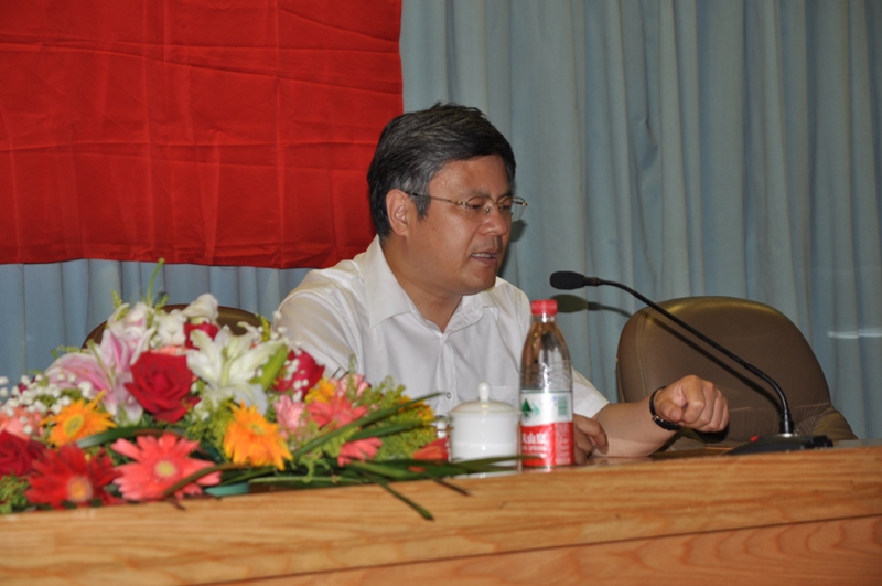 報告開始前,校黨委副書記盧思鋒為謝春濤教授頒發了客座教授聘書,并贈送紀念品。隨后,謝教授開始作報告,他的報告深入淺出,深刻地剖析了中國共產黨發展的歷史與現狀。