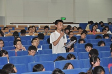 謝教授的報告結束后,同學們針對報告內容踴躍提出自己的問題,謝教授用生動的例子予以了詳盡的回答,引來同學們陣陣掌聲。整場報告非常精彩,現場同學為謝春濤教授獻上了鮮花表達感謝。