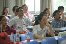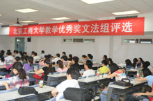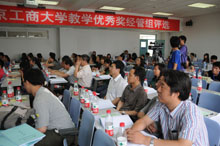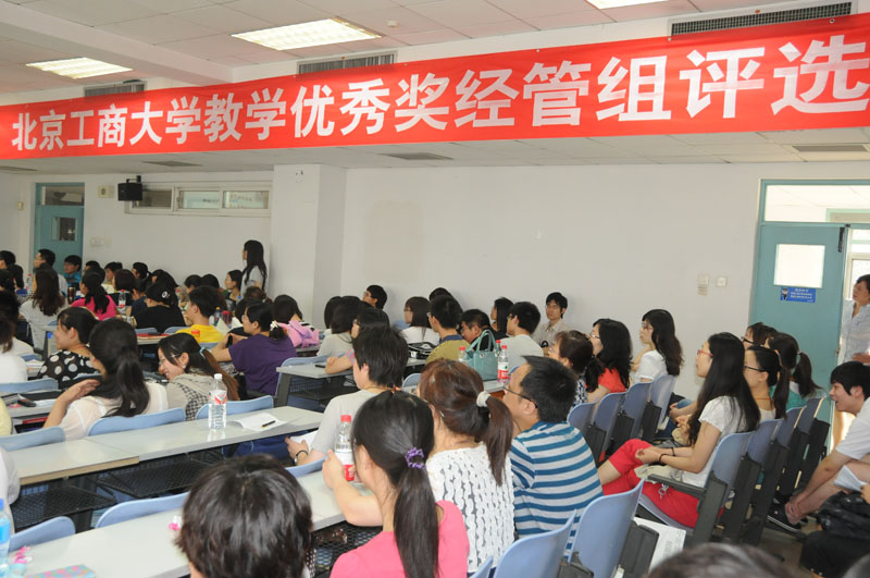 6月19日上午8時,學校教學優秀獎學科組評選活動在阜成路校區教三樓進行。學校黨委副書記、紀委書記張德玉,副校長李朝鮮親臨現場指導工作并觀摩參評教師的教學演示。評選分為理工、經管、文法三個學科組同時進行,由組織部部長黃志剛教授、教務處處長張曉堂教授、研究生部主任何明珂教授分別主持,教師評委和學生評委以及各學院(部)領導、教師代表、學生代表500多人到場評選和觀摩。