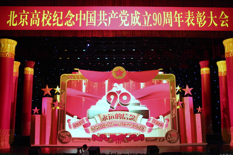 6月23日,北京高校紀念中國共產黨成立90周年表彰大會在北京會議中心舉行。市委常委、教育工委書記趙鳳桐,副市長洪峰出席大會。各高校先進基層黨組織、優秀共產黨員、優秀黨務工作者及師生代表約1600人參加大會。其中,我校由黨委書記孫堯東,黨委副書記、紀委書記張德玉率隊參加。會上,我校文科實踐中心黨支部、食品學院廖永紅教授分別被授予“北京高校先進基層黨組織”稱號和“北京高校優秀共產黨員”稱號。