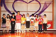 Starry Night表彰大會(huì)是今晚的主要內(nèi)容之一,主要表彰一學(xué)年來在學(xué)習(xí)生活中表現(xiàn)出色的個(gè)人和集體。經(jīng)師生投票,共評(píng)出2011年度“感動(dòng)外語人物”7名,他們是:學(xué)習(xí)大明星1名,文藝大明星1名,開心果1名,優(yōu)秀宿舍2個(gè),五星班集體2個(gè)。到會(huì)的老師和學(xué)院領(lǐng)導(dǎo)分別為他們頒發(fā)了獎(jiǎng)狀和獎(jiǎng)品。