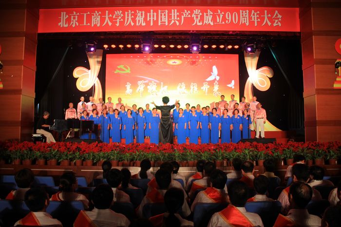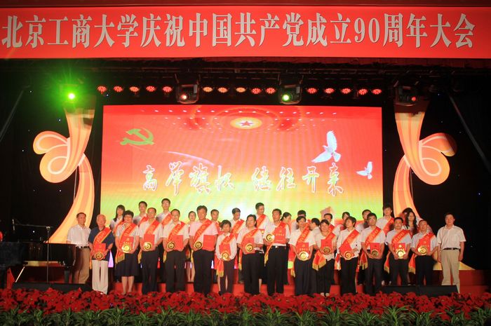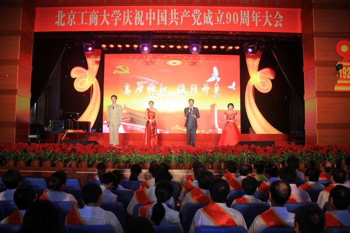 7月1日,阜成路東區(qū)禮堂鮮花錦簇,喜氣洋洋,北京工商大學(xué)慶祝中國共產(chǎn)黨成立九十周年大會(huì)在此隆重召開。學(xué)校黨委書記孫堯東,校長譚向勇,黨委副書記盧思鋒,黨委副書記、紀(jì)委書記張德玉,副校長孫寶國、謝志華、李朝鮮、張?jiān)拧⒑粑牧脸鱿髸?huì)。北京市教工委聯(lián)絡(luò)員畢孔彰應(yīng)邀出席大會(huì)。