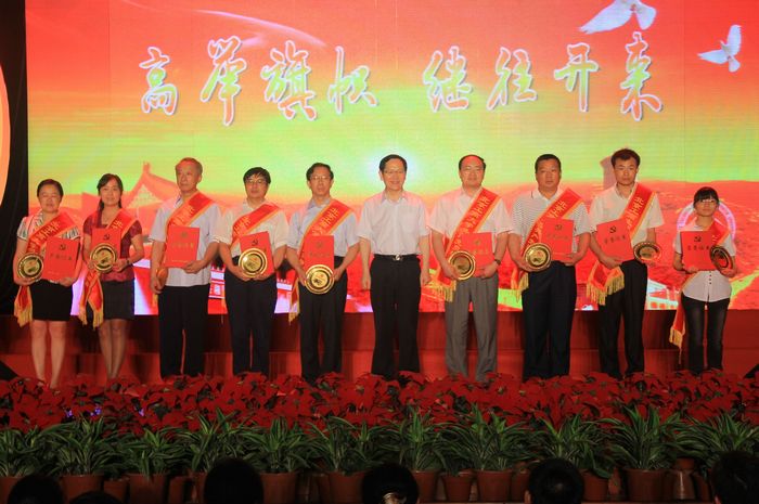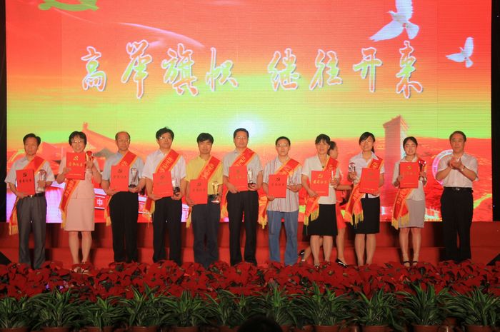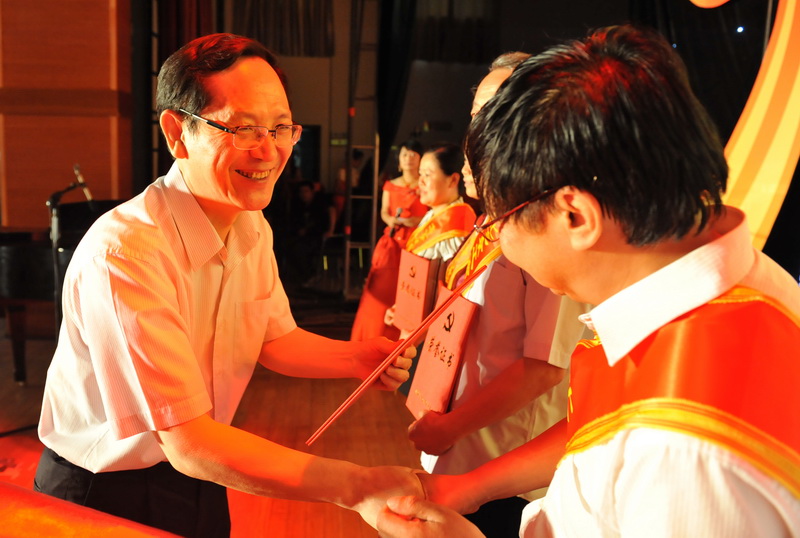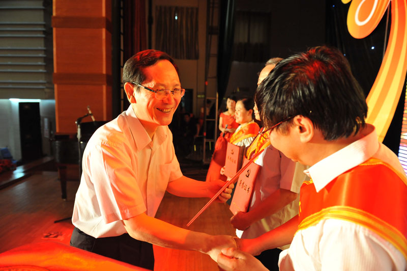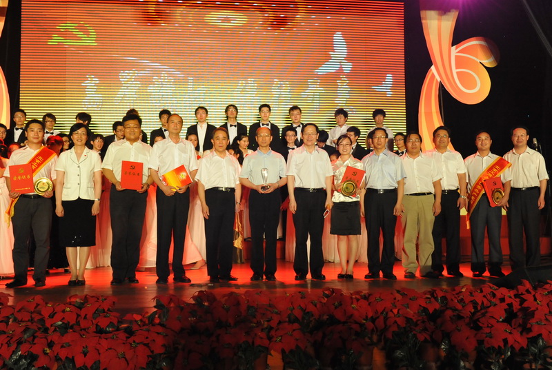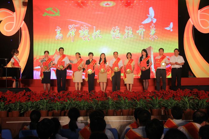 接下來,一段視頻回顧了學(xué)校近年來在黨建和思想政治工作、教學(xué)、科研、學(xué)生培養(yǎng)等方面取得的成績,展示了10個(gè)先進(jìn)基層黨組織和10位黨員標(biāo)兵的先進(jìn)事跡與風(fēng)采。在熱烈的掌聲中,60名獲獎(jiǎng)單位代表及個(gè)人身披鮮紅的錦帶依次登臺(tái),從校領(lǐng)導(dǎo)手中接過金燦燦的獎(jiǎng)牌及榮譽(yù)證書。