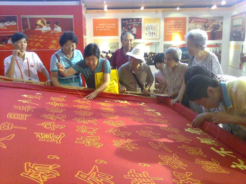 在參觀臨結(jié)束時,大家紛紛把自己寫有對黨無限深情、對黨表決心的紅色《百萬黨員寄心語》明信片投入現(xiàn)場信箱。大家還來到《入黨誓詞》大型刺繡絨布前,爭先恐后拿起繡針,親手為入黨誓詞繡上一針,表達(dá)出自己對黨的無限忠誠,永遠(yuǎn)跟黨走的堅定信念!