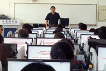 張教授指出英文出版是生存和競爭的需要,鼓勵大家有語言基礎就要瞄準國際市場,開拓思路,人文領域社科大學教師要找準各學科門類中科研切入點、創新點,不要禁錮于自己的學科,學科交叉越廣越好,勇于走向世界,要有國際視野,發表有國際水平的學術論文。張教授根據自己的切身經歷,從向國外發郵件的注意事項、選題、課題設計、研究方法到寫作風格等方面給予權威指導。張教授還以自己的社會學研究為實例,介紹在國外用英語發表論文的基本要求、格式、撰寫技巧、策略等并進行詳細的分析講解,為我校教師在國外發表論文提供了切實有效的幫助。
