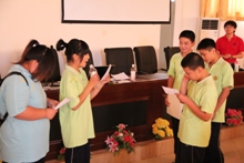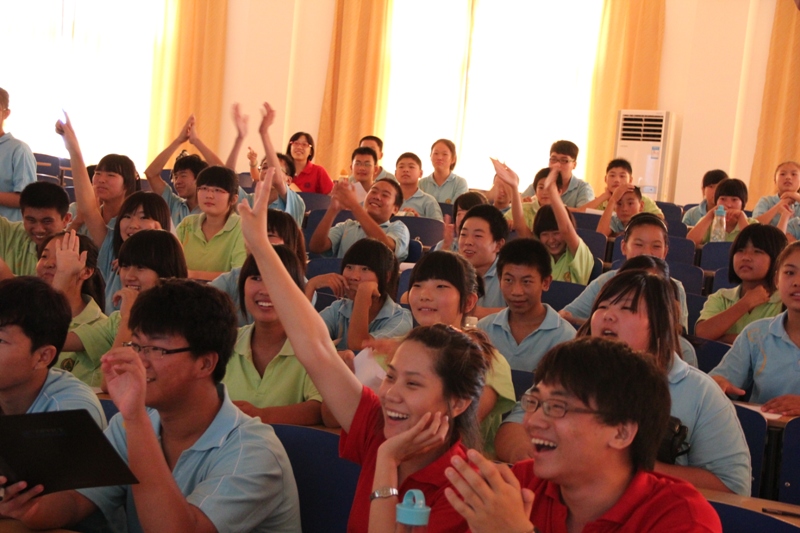 孩子們在聽課的過程中都表現(xiàn)得非常專注,盡管這是一個從未涉及過的領(lǐng)域,但他們都試圖用心去慢慢體會主講人所提到的表演要點(diǎn)。而在舉例說明情感和語言的運(yùn)用方法時,剛剛在第七屆“商之夜”晚會上有過精彩表現(xiàn)的鄭岑也即興表演了兩句當(dāng)時的經(jīng)典臺詞,博得了孩子們熱烈的掌聲。