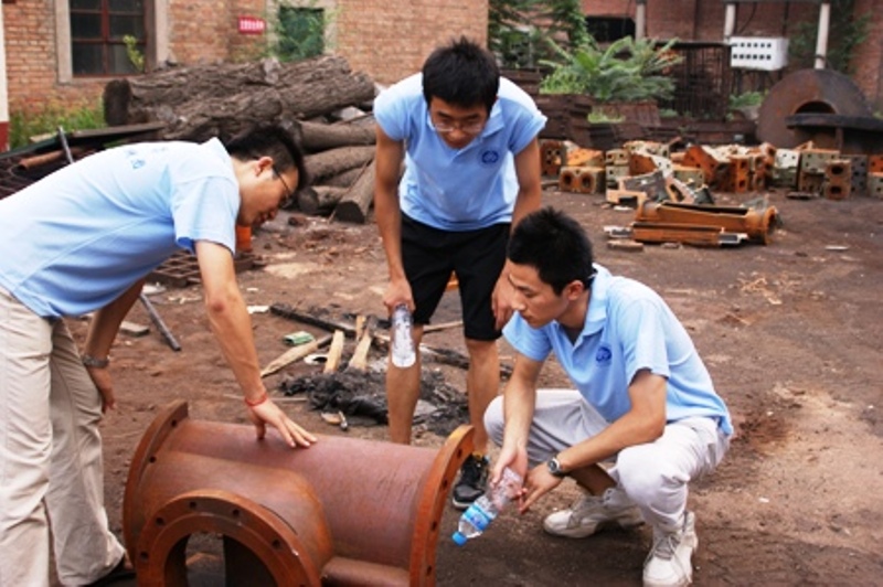 天氣雖然炎熱,路途雖然漫長,但走在大路上的實踐團同學卻依然精神飽滿。實踐團走進基層企業了解經濟發展,是學校為實踐團設立的目標之一。實踐團的同學在兩位帶隊老師的帶領下徒步前往了“北京京亨機械設備加工廠”。這是一家鑄造加工廠,已有35年的歷史,目前的產品以城市環衛鑄件和機車用件為主,年產值近千萬。王廠長向實踐團的同學講解了整個工藝的流程,并親自帶領同學參觀了制模車間。當了解到該廠生產的機車鑄件用于動車組時,實踐團的同學發出了由衷的贊嘆。基層企業經濟發展,直接提高了當地農民收入,為當地經濟的發展貢獻了力量。參觀結束后,實踐團順利返回駐地。