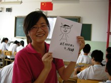 今天,我們采訪的是我團(tuán)第二分隊教學(xué)組組長,同時也是4班班主任羅杜娟。美工課上,孩子們畫了很多關(guān)于羅老師的圖畫,諸如“我是四班班主任羅杜娟!”、“祝羅老師越來越美麗!”。在我們看來稚嫩的線條和有些歪歪扭扭的字跡,卻傳達(dá)出了大家對羅杜娟老師的喜愛,剎那間,羅杜娟老師成為了實(shí)踐團(tuán)最受歡迎的班主任。