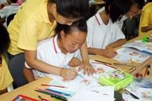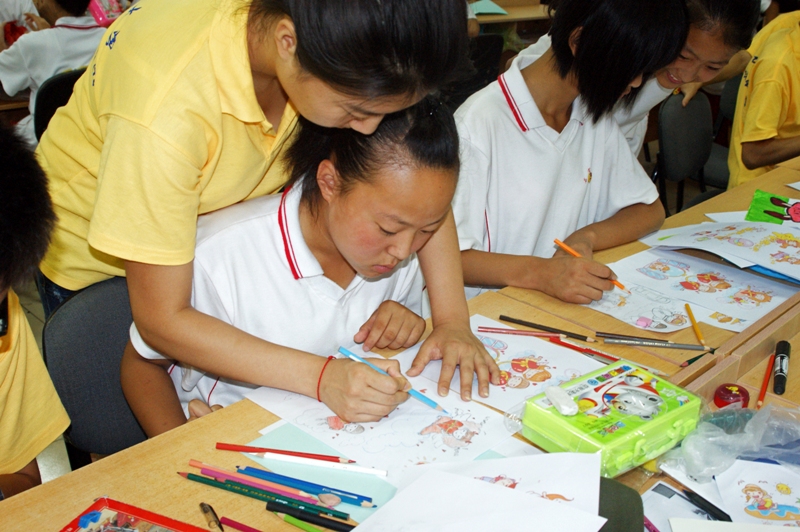 下午三時(shí)許,支教組的老師們根據(jù)同學(xué)們不同的興趣和愛(ài)好,把學(xué)生分為折紙和繪畫(huà)兩個(gè)小班進(jìn)行教學(xué)。老師們親切地與孩子們進(jìn)行交談、溝通、互動(dòng),了解孩子們的情況,既細(xì)心又認(rèn)真,手把手地教孩子們折紙和繪畫(huà)。在這種和諧、溫暖的氛圍下,孩子們奇特的想象力和創(chuàng)造力被漸漸激發(fā)出來(lái),創(chuàng)作出他們特有的、非常可愛(ài)的藝術(shù)作品。大多數(shù)孩子表示他們喜歡折紙、繪畫(huà)這些藝術(shù),覺(jué)得比看電視、玩電腦更有意義。支教組張俊老師和吳芳芳老師表示,他們主要是想多帶給孩子們一些快樂(lè),讓孩子們更好地成長(zhǎng),同時(shí)增強(qiáng)他們對(duì)美的感知能力,讓他們更加熱愛(ài)生活,豐富生活經(jīng)歷。