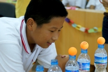 在一個個精彩的節目后,精心設計的小游戲開始了,“口水大戰”、“數青蛙”、“成語接龍”、“你來比劃我來猜”……小游戲引發了同學們的陣陣笑聲,現場的歡樂氣氛讓大家忍俊不禁。“翠綠的襪子”,學生機智地回答;“含情脈脈”,組員逗樂的比劃,給大家留下了深刻的印象,大家哄堂大笑。