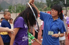 在趣味運動會中,各年級分別組成一個隊?;顒颖局?“全員性參與”的目的,培養(yǎng)孩子們團結協(xié)作的能力。比賽包括“三人四足”、“夾球奔跑”、“傳呼啦圈”等項目。期間,孩子們不免跌跌拌拌,卻依然堅持奔向終點,現(xiàn)場笑聲、掌聲、吶喊聲不斷?;顒舆€設有“親子賽”,使當?shù)匕傩找灿袡C會參加,現(xiàn)場氣氛變得更加融洽、熱鬧。