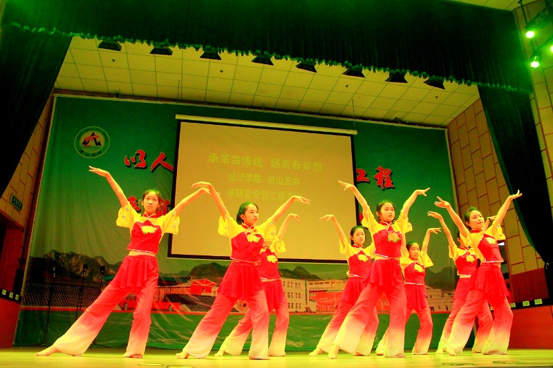 在實(shí)踐分團(tuán)成員們的悉心編排下,孩子們以精彩紛呈的表演為黨的生日獻(xiàn)禮。上午十一時(shí),北京工商大學(xué)經(jīng)濟(jì)學(xué)院—房山五中學(xué)生夏令營(yíng)匯報(bào)演出在報(bào)告廳隆重舉行。房山五中校長(zhǎng)馬連山,房山五中副校長(zhǎng)毛玉革等領(lǐng)導(dǎo)和老師熱情迎接我校領(lǐng)導(dǎo)的到來(lái)。我校黨委副書(shū)記盧思鋒率慰問(wèn)團(tuán)觀看了匯報(bào)表演,房山區(qū)教工委書(shū)記杜成喜也來(lái)到了房山五中觀看表演。領(lǐng)導(dǎo)們的到來(lái)使匯報(bào)演出顯得分外隆重,我們的表演也倍受鼓舞。健美操《舞動(dòng)的青春》展現(xiàn)了房山五中孩子們的青春熱情和崇高理想;詩(shī)朗誦《相信未來(lái)》中“立志做祖國(guó)棟梁之材”的呼告如同鄭重的宣誓,傳向遠(yuǎn)方;“夢(mèng)想啟航杯”辯論賽更是繼承了工商大學(xué)經(jīng)濟(jì)學(xué)院辯論隊(duì)一貫的犀利辯風(fēng)和精湛技巧;合唱《祖國(guó),請(qǐng)聽(tīng)我說(shuō)》、《共產(chǎn)兒童團(tuán)團(tuán)歌》唱出了五中少年們“永遠(yuǎn)跟黨走”的心聲;舞蹈《紅旗飄飄》舞出了五中孩子們的報(bào)黨紅心;《黨旗下的童真》作為獻(xiàn)給黨的禮物展現(xiàn)了創(chuàng)意的匯聚;那充滿智慧和熱情的京劇臉譜,折紙藝術(shù)和文化衫也將被這特殊的日子所珍藏;在節(jié)目的最后,詩(shī)朗誦《師生情,永相連》見(jiàn)證了北京工商大學(xué)經(jīng)濟(jì)學(xué)院和房山五中無(wú)數(shù)顆緊緊相連的心。演出中雷動(dòng)的掌聲是對(duì)成員們無(wú)悔付出的最好回報(bào),領(lǐng)導(dǎo)的肯定是此次實(shí)踐活動(dòng)價(jià)值最好的證明。