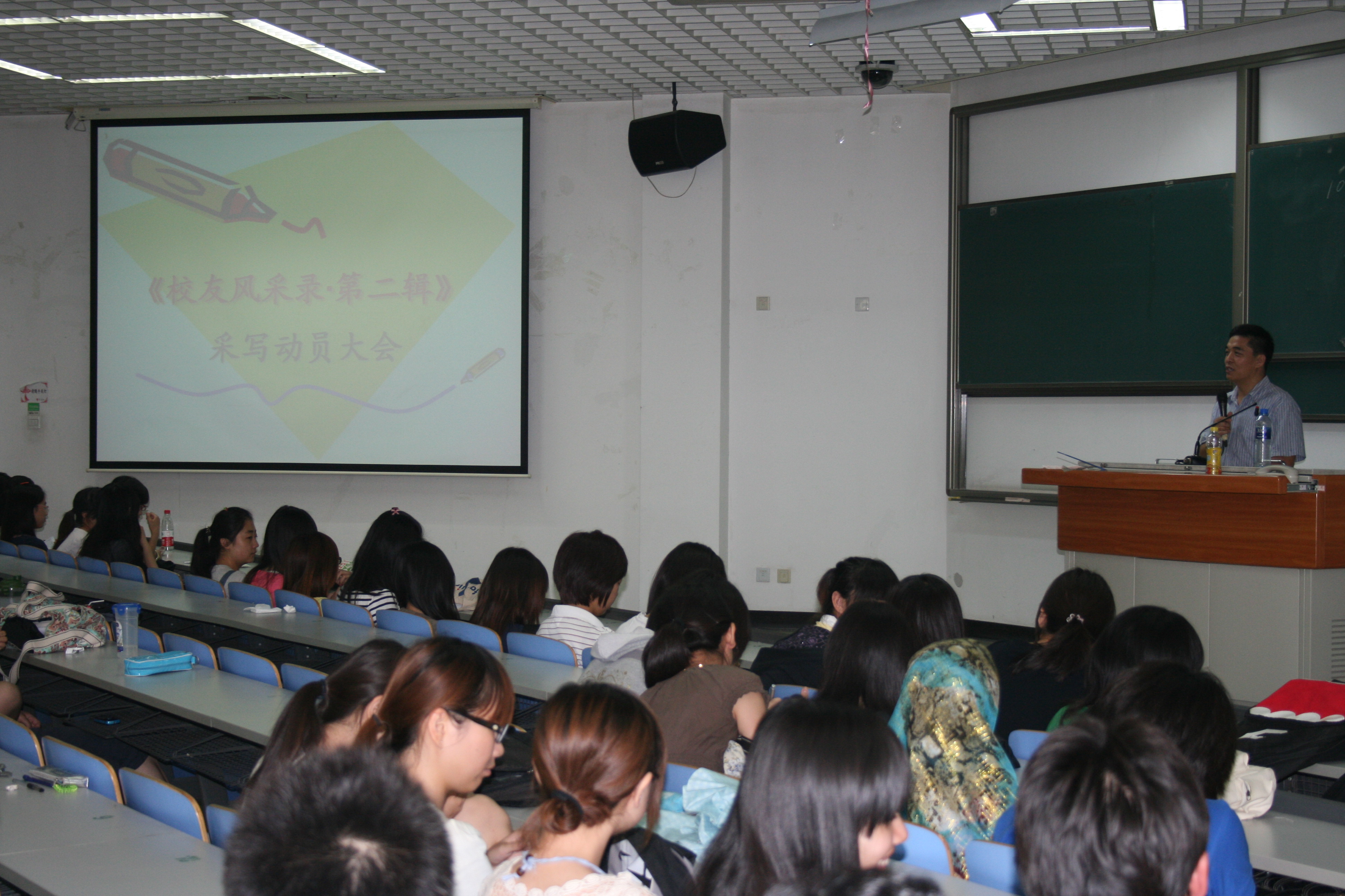 為更好的展現(xiàn)學(xué)校風(fēng)采、進(jìn)一步加強(qiáng)和校友之間的溝通和交流,學(xué)校校友會(huì)組織編寫(xiě)《校友風(fēng)采錄》,第一輯于2010年順利出版,在校慶時(shí)期成功展示了我校校友風(fēng)采,受到了廣泛的好評(píng)。為使《校友風(fēng)采錄》(第二輯)的采寫(xiě)工作采寫(xiě)工作順利開(kāi)展,6月10日學(xué)校黨委副書(shū)記盧思鋒召集、校友會(huì)和藝術(shù)與傳媒學(xué)院負(fù)責(zé)人對(duì)編寫(xiě)工作進(jìn)行了部署。7月6日,《北京工商大學(xué)校友風(fēng)采錄》(第二輯)采訪動(dòng)員大會(huì)在我校良鄉(xiāng)校區(qū)召開(kāi)。校友會(huì)秘書(shū)長(zhǎng)張曉磊在會(huì)上進(jìn)行了業(yè)務(wù)指導(dǎo),指出編寫(xiě)《校友風(fēng)采錄》的具有三個(gè)方面意義,首先是校友是學(xué)校流動(dòng)的名片,記錄他們的成功能給我校師生以啟迪;其次,校友是我校最寶貴的資源,他們不僅為在校學(xué)生傳授經(jīng)驗(yàn),還為學(xué)校提供各種幫助;第三,09級(jí)新聞系的同學(xué)在這次采訪中不僅是記者更是學(xué)校的名片,向校友們介紹學(xué)校的發(fā)展。藝傳學(xué)院副書(shū)記楊艷萍在會(huì)上作了總結(jié),她希望09級(jí)的同學(xué)能接過(guò)08級(jí)同學(xué)的接力棒,為學(xué)弟學(xué)妹們做出榜樣。校友會(huì)副秘書(shū)長(zhǎng)王嘉彥、新聞系主任王擎也分別在會(huì)上進(jìn)行了安全教育、采寫(xiě)要求等具體安排說(shuō)明。