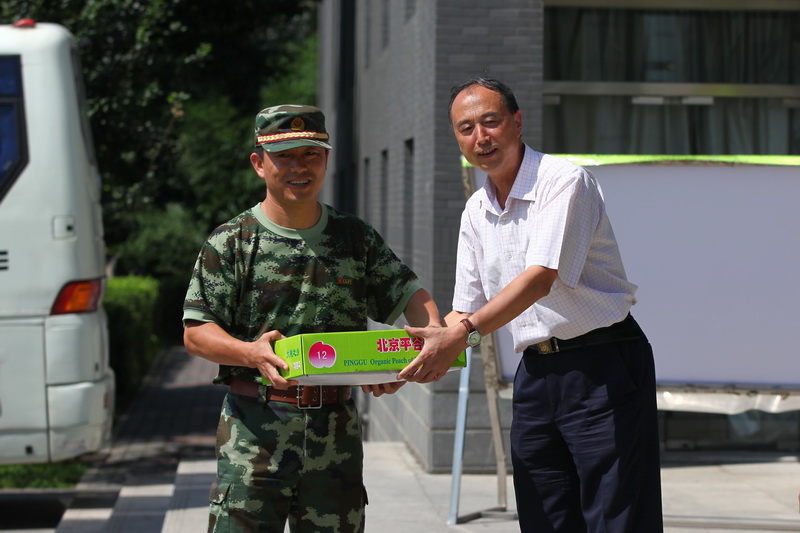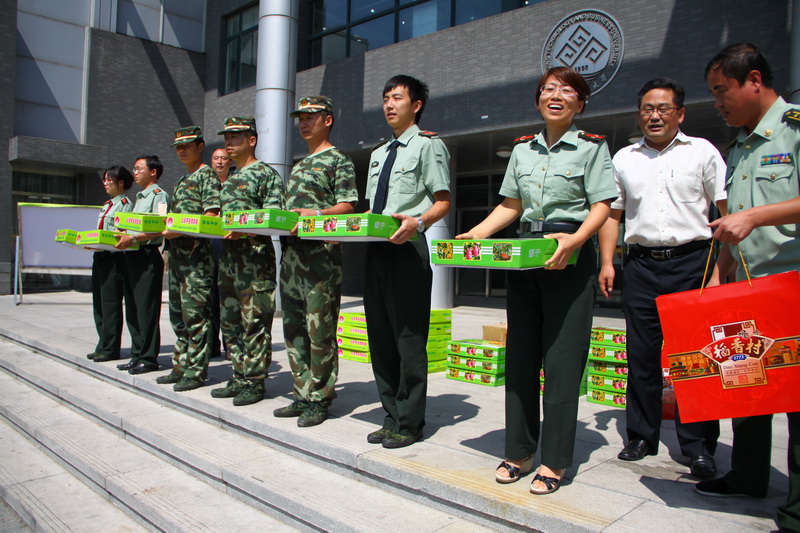 9月2日,黨委副書記盧思鋒,黨委副書記、紀委書記、工會主席張德玉代表學校黨委和行政來到良鄉校區,親切慰問了在新生軍訓中不辭辛苦的軍訓團老師和官兵們,為他們送去品月餅、水果和節日的祝福。