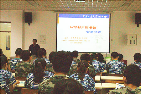緊張軍訓之余,外國語學院新生入學教育進入了新的階段。8月31日下午,在學校圖書館領導的大力支持下,學院2011級新生第一次集體走進學校圖書館,傾聽圖書館老師所做的專題講座,參觀圖書館的閱覽室和借書區,親身感受圖書館這個北京工商大學里“無聲的教師”的關懷。