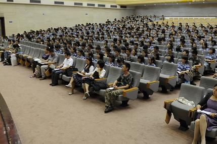 9月1日下午,經濟學院召開2011級新生開學典禮暨學院領導與新生見面會。黨總支書記李寶仁,院長楊德勇,副院長郭馨梅、李書友、馬若微,各系主任、全體輔導員和班主任及2011級全體新生參加了大會。會議由學院黨總支副書記馬韜光主持。