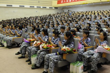 同學們認真傾聽著每個感人肺腑的故事,掌聲不斷。四營十三連三班的李碩感動地說,這些通過普通的百姓講述他們親歷的生動故事,展現了黨和人民的情誼,很大眾化而且貼近生活,十分真實,令人感動。宣講結束后,學生代表分別向九位宣講人獻花,表達了尊敬與感謝之情。