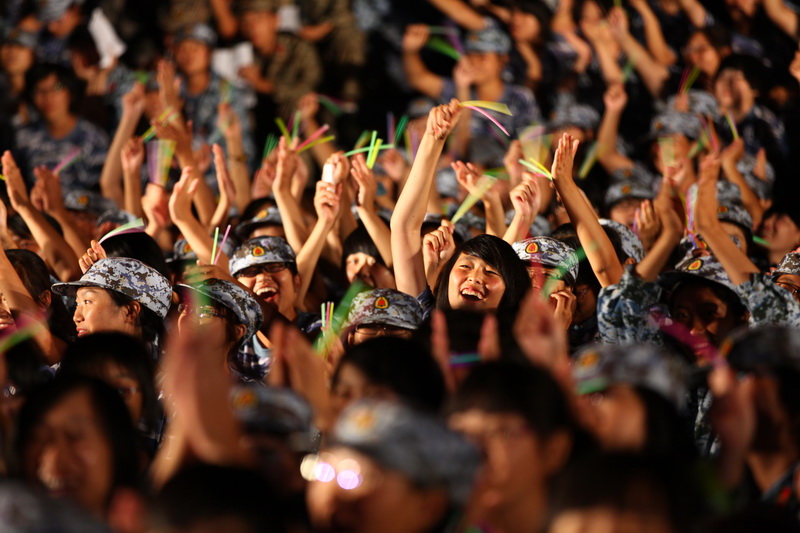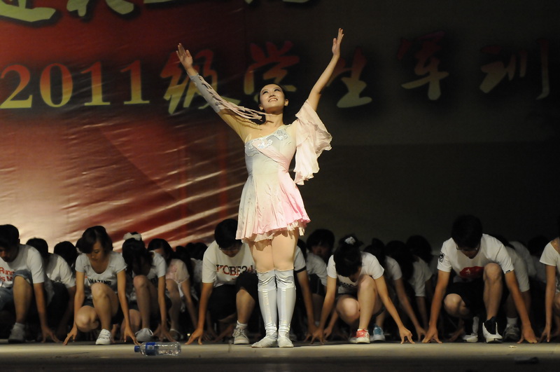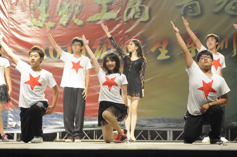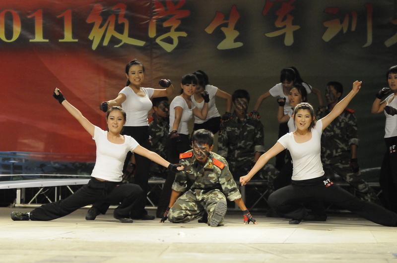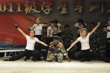 隨后,來自二營的同學(xué)們演唱了他們改編的《真心英雄》和《團(tuán)結(jié)就是力量》,唱出了大一新生內(nèi)心的苦與累、喜與樂。一營的歌舞劇《Dream high》講述的是一名因軍訓(xùn)太疲憊而睡著的男生在夢中發(fā)生的事情。激情的舞步令觀眾大飽眼福。