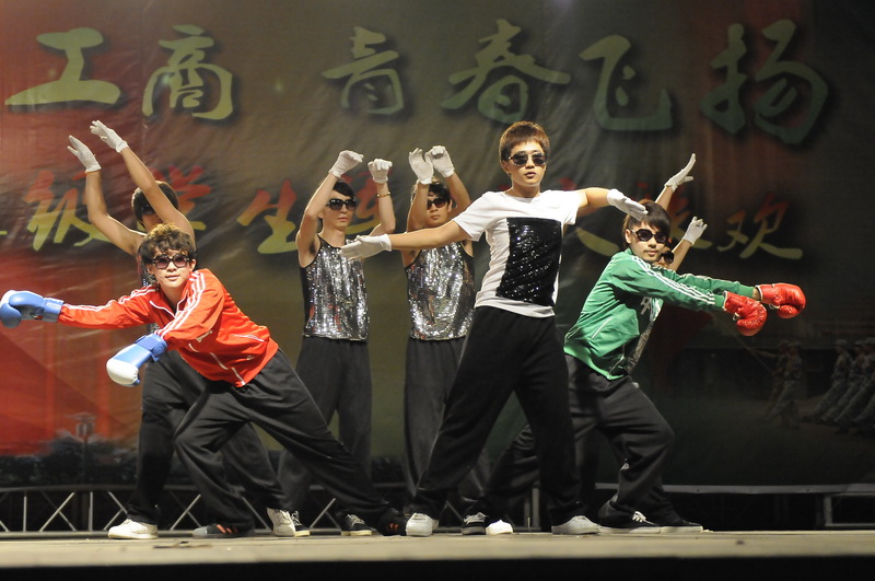 第一個登場的是軍訓(xùn)團(tuán)三營學(xué)員,他們帶來的音樂劇《新的開始》,他們用舞蹈、朗誦、表演等形式,表現(xiàn)了從第一次踏入工商的欣喜,到對未來大學(xué)生活的期待。舞蹈還將街舞與擒敵拳、太極等相結(jié)合,非常有創(chuàng)意。最后,他們以軍禮結(jié)束了表演,表達(dá)了對教官的尊敬,展現(xiàn)出青春最強(qiáng)者的風(fēng)采。
