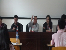 下午一點,師生一行抵達雙孝村,得到了雙孝村黨支部書記、村長及村委會領導班子的熱烈歡迎。在村委大院的報告廳里進行座談會,雙方在之前多次接觸后,此次進一步相互了解。首先,法學院良鄉校區學生黨支部書記曹洪濤簡要介紹了此行的目的和安排。輔導員畢老師對村領導班子的接待和支持表示了感謝。而后,村黨支部杜書記向大家介紹了村子的基本狀況,人口、收入、交通、生產以及醫保情況,并請老黨員介紹了“雙孝村”名字的由來和堅持了十余年的重陽節敬老活動,并介紹了村民生活水平及村子的發展進程。通過介紹,學生們更加了解了新農村建設的成效,對于雙孝村的歷史、當前及未來規劃有了較為詳細的認識。同學們對于雙孝村交通、農產品銷售及所需法律支持等問題進行踴躍的提問,并得到村領導的詳細解答。