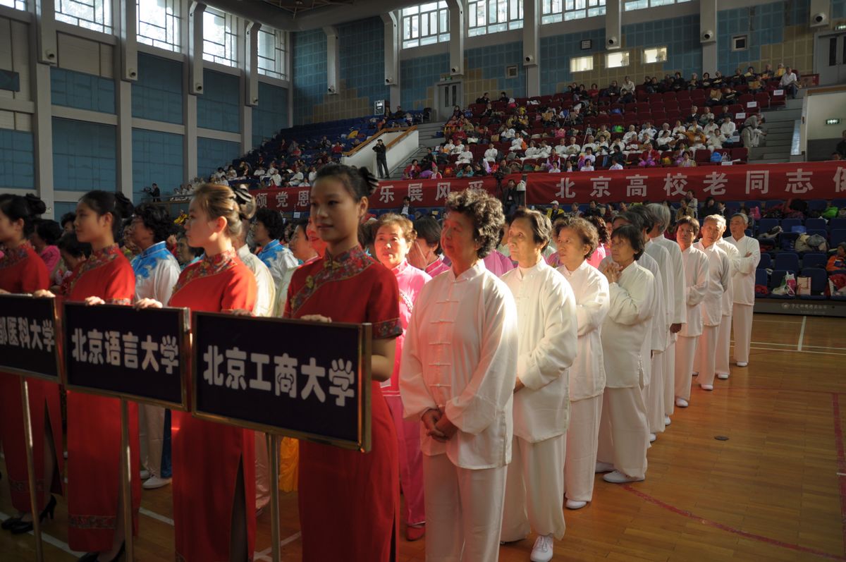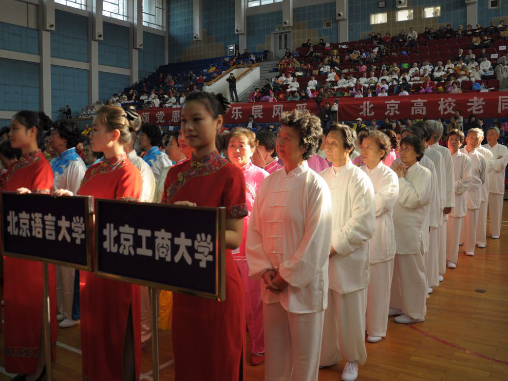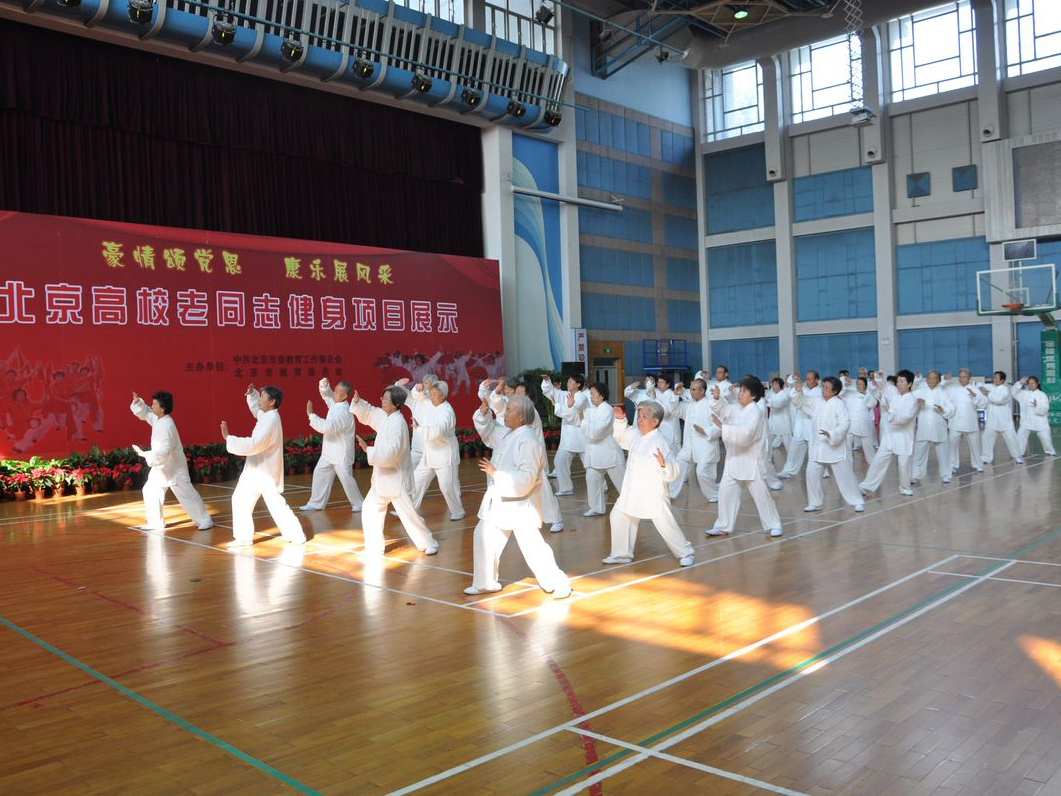 10月18日,我校太極隊36名離退休干部與北京高校廣大離退休干部歡聚在北方工業大學體育館,參加“豪情頌黨恩、康樂展風采”——北京高校離退休干部健身項目展示活動。參加太極拳展示的每一位離退休干部,以昂揚向上的精神風貌展示了我校離退休干部豐富多彩的晚年生活。本次北京高校離退休干部健身項目展示活動共有20所高校參加,我校太極隊獲得北京高校老同志健身項目展示活動樂齡風采獎。