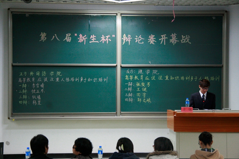 10月26日晚7點,由教務處、學生處和團委主辦,學生會學習實踐部、演講與口才協會以及學生會宣傳部承辦的第八屆“新生杯”辯論賽在良鄉校區開賽。