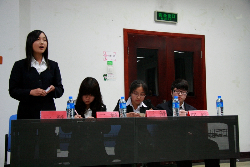 本次開幕戰的辯題是“高等教育應該注重人格培訓還是知識培訓”。正方為外國語學院,他們支持的觀點是“高等教育應注重人格培訓多于知識培訓”;反方為理學院,他們支持的觀點是“高等教育應注重知識培訓多于人格培訓”。正方以當代出現的社會問題為例,引出當代社會人格缺失的現象,強調了人格的重要性;而反方緊扣高等教育、知識、人格等三詞的定義,從個人、社會、國家三個方面由淺入深地論述了知識在高等教育中的主導地位。雙方辯手各不相讓,發言環環相扣,用擲地有聲的語言贏得了全場一次又一次的掌聲。